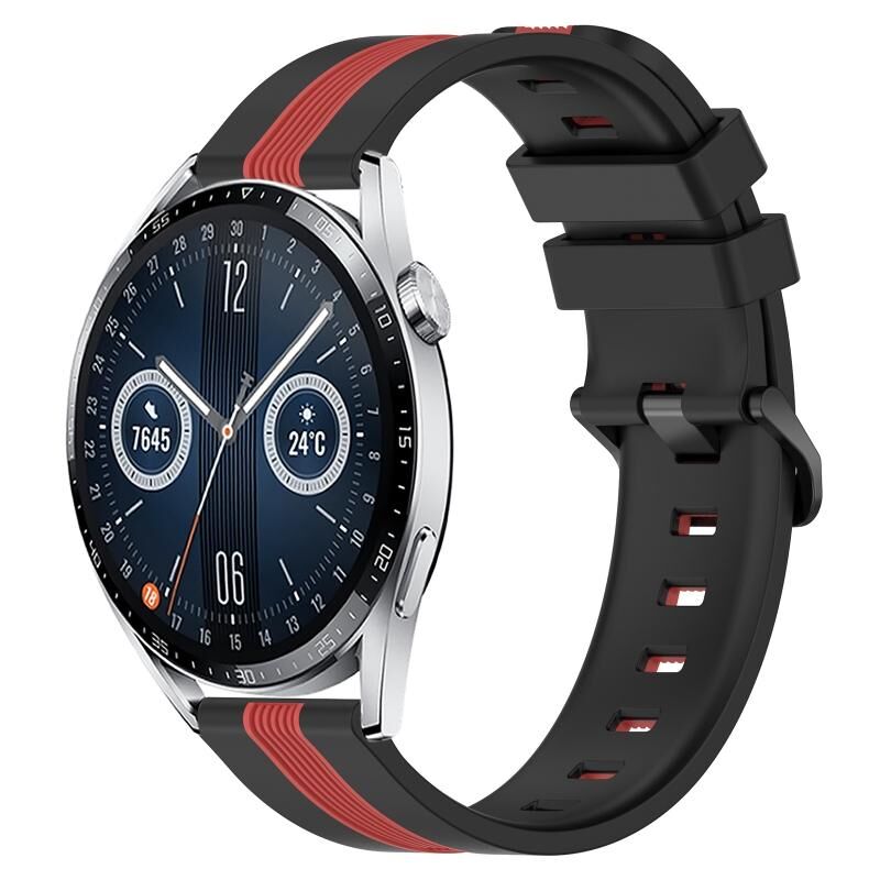 Για Huawei Watch GT3 46mm 22mm Κάθετη ζώνη ρολογιού σιλικόνης δύο χρωμάτων (μαύρο + κόκκινο)