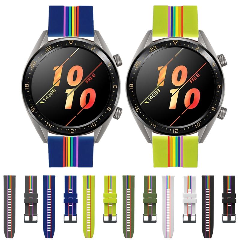 For Huawei Watch GT3 46mm Rainbow Silicone Watch Band (Army Green)