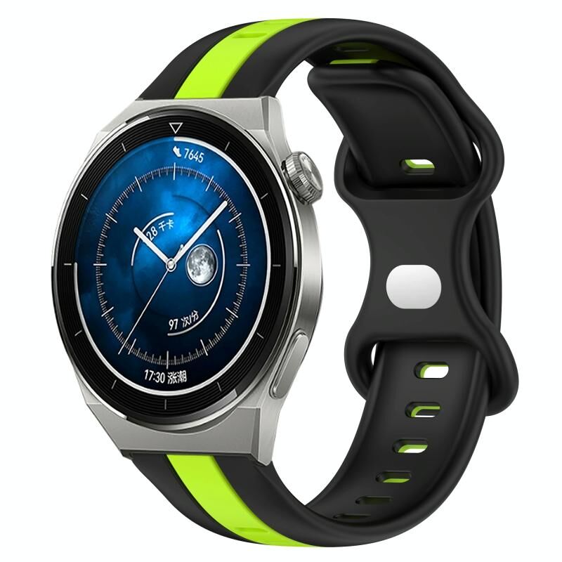 For Huawei Watch GT3 Pro 43mm 20mm Butterfly Buckle Two-Color Silicone Watch Band(Black+Green)