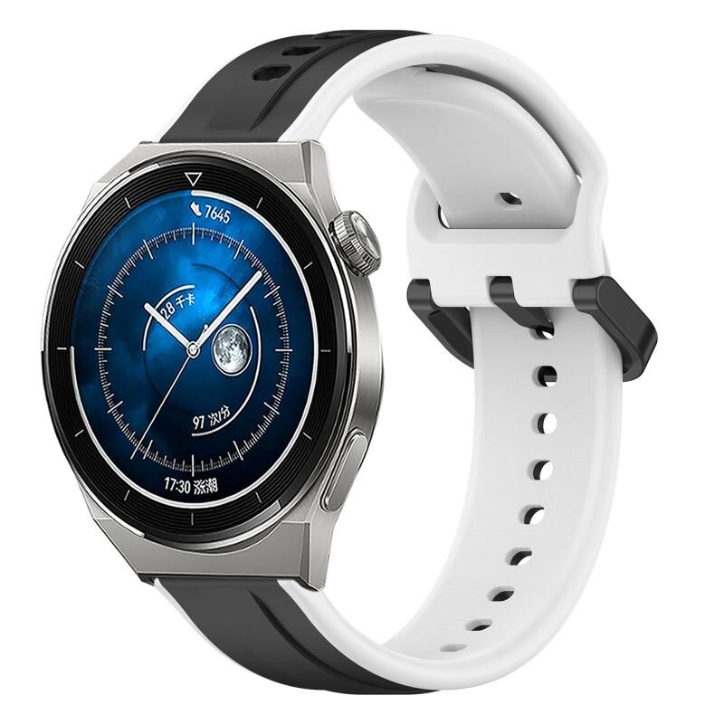 Για το Huawei Watch GT3 Pro 43mm 20mm Convex Loop δύο χρωμάτων σιλικόνης ρολόι μπάντα ρολογιού (μαύρο + λευκό)