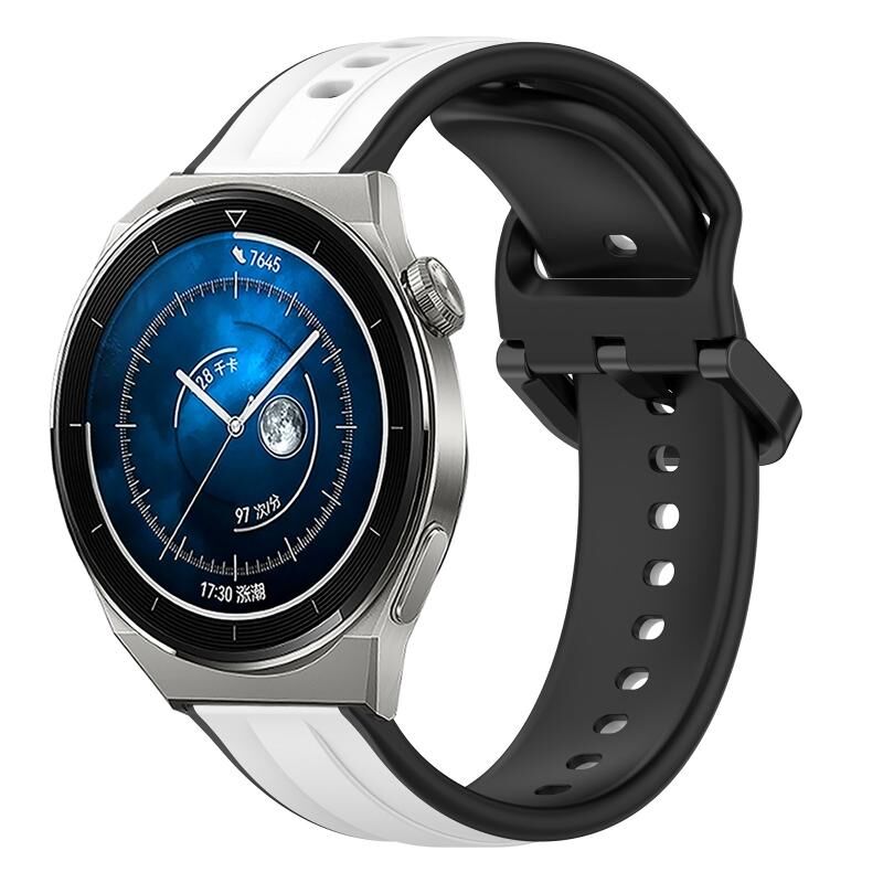 Για το Huawei Watch GT3 Pro 43mm 20mm Convex Loop δύο χρωμάτων σιλικόνης ρολόι μπάντα ρολογιού (λευκό + μαύρο)