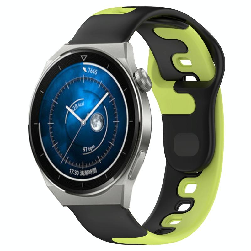 For Huawei Watch GT3 Pro 43mm 20mm Double Color Silicone Watch Band(Black+Green)