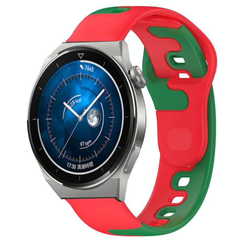 For Huawei Watch GT3 Pro 43mm 20mm Double Color Silicone Watch Band(Red+Green)
