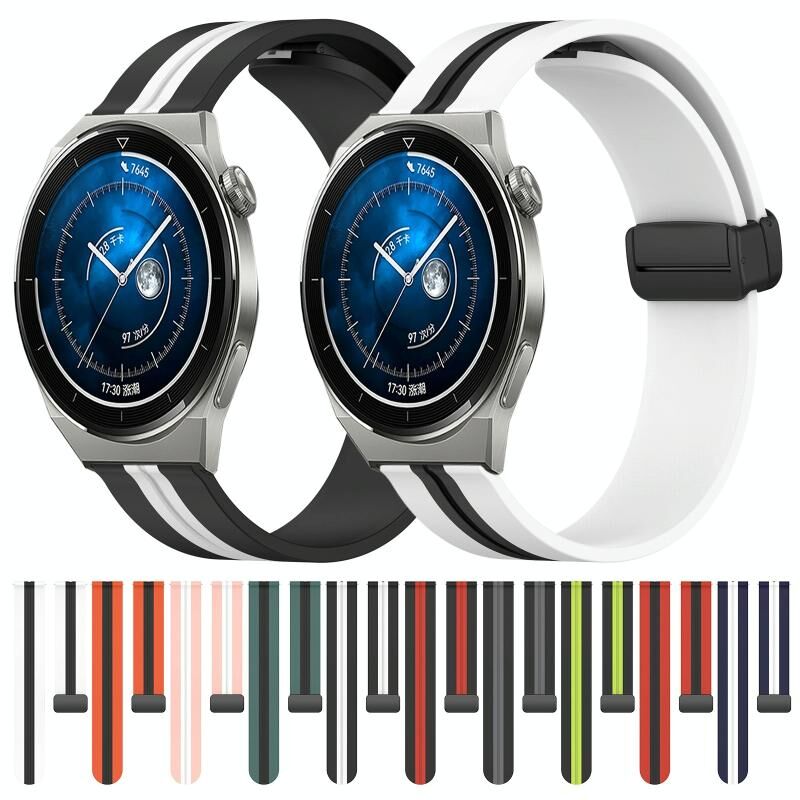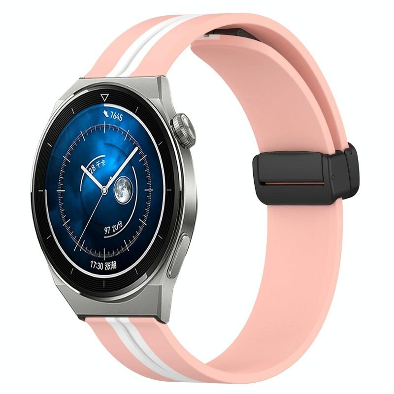 Για το Huawei Watch GT3 Pro 43mm 20mm Πτυσσόμενο μαγνητικό κούμπωμα ζώνη ρολογιού σιλικόνης (ροζ+λευκό)