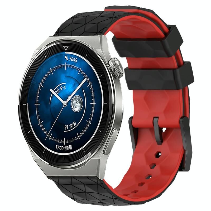 Για το Huawei Watch GT3 Pro 43mm 20mm ποδοσφαιρικό μοτίβο σιλικόνης δύο χρωμάτων (μαύρο + κόκκινο)