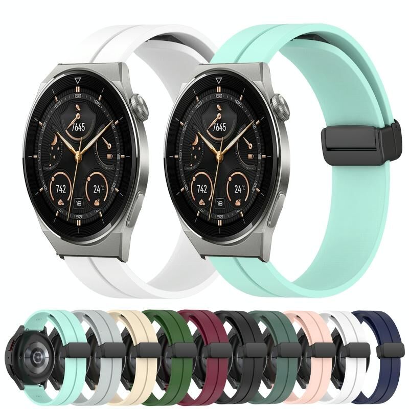 Για το Huawei Watch GT3 Pro 43mm 20mm στερεό χρώμα μαγνητικό κούμπωμα ζώνη ρολογιού σιλικόνης (ροζ)