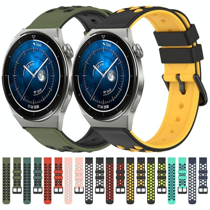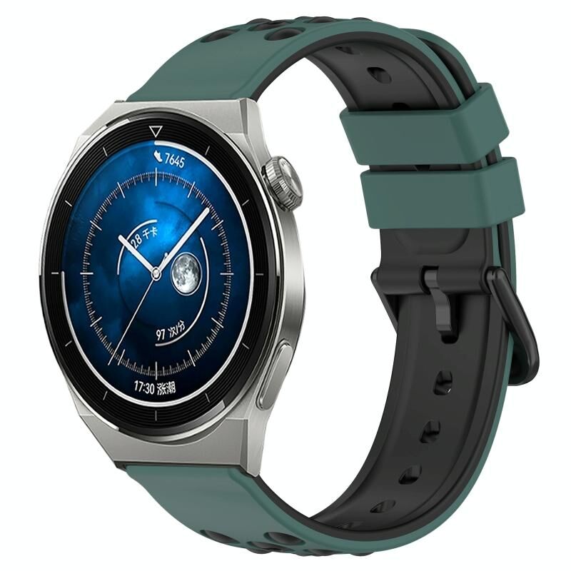 Για το Huawei Watch GT3 Pro 43mm 20mm Δύο χρωμάτων πορώδες λουράκι ρολογιού σιλικόνης (Olive Green + Μαύρο)