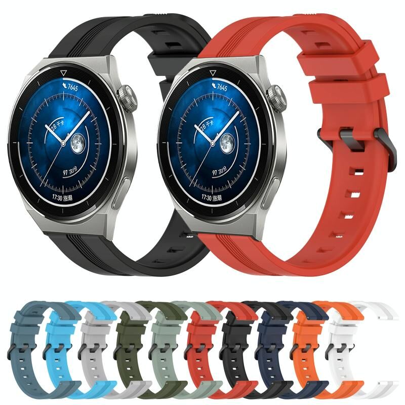 Για το Huawei Watch GT3 Pro 46mm 22mm Concave Striped Slicone Watch Band (Navy Blue)