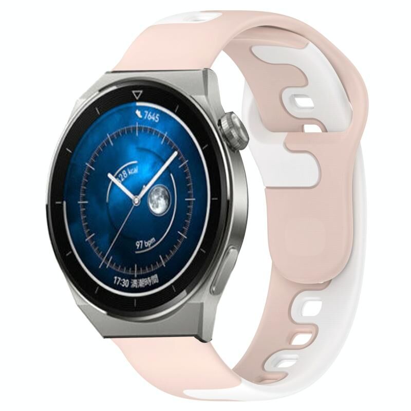 Για Huawei Watch GT3 Pro 46mm 22mm Διπλό χρώμα σιλικόνης ρολόι μπάντα ρολογιού (ροζ + λευκό)