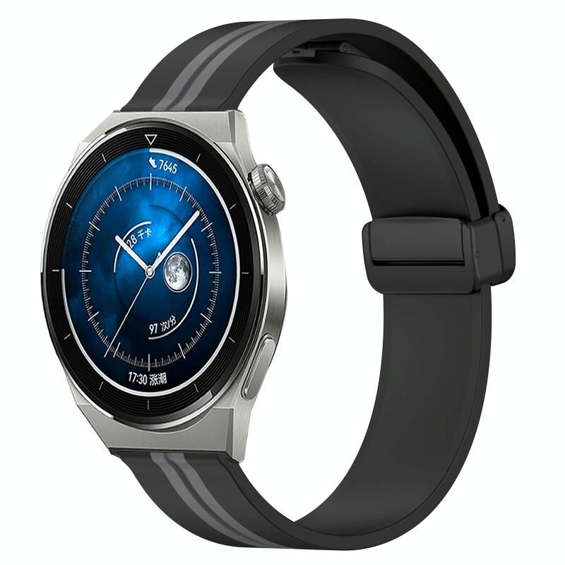 Για το Huawei Watch GT3 Pro 46mm 22mm Πτυσσόμενο μαγνητικό κούμπωμα ζώνη ρολογιού σιλικόνης (μαύρο + γκρι)
