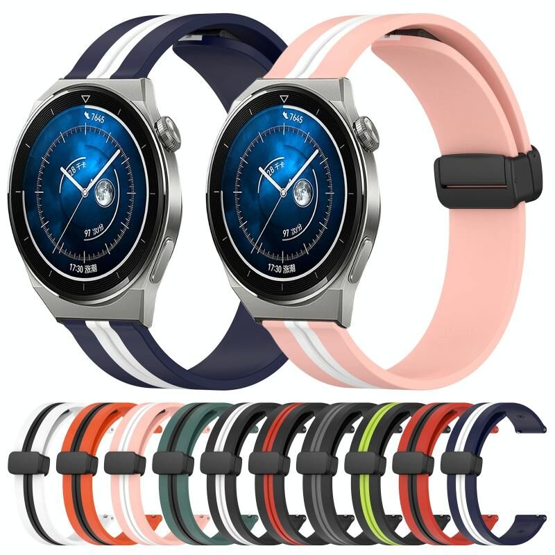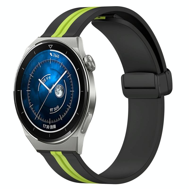 Για το Huawei Watch GT3 Pro 46mm 22mm Πτυσσόμενο μαγνητικό κούμπωμα ζώνη ρολογιού σιλικόνης (μαύρο + πράσινο χρώμα)