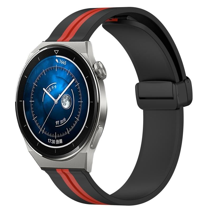 Για Huawei Watch GT3 Pro 46mm 22mm Πτυσσόμενο μαγνητικό κούμπωμα ζώνη ρολογιού σιλικόνης (μαύρο + κόκκινο)