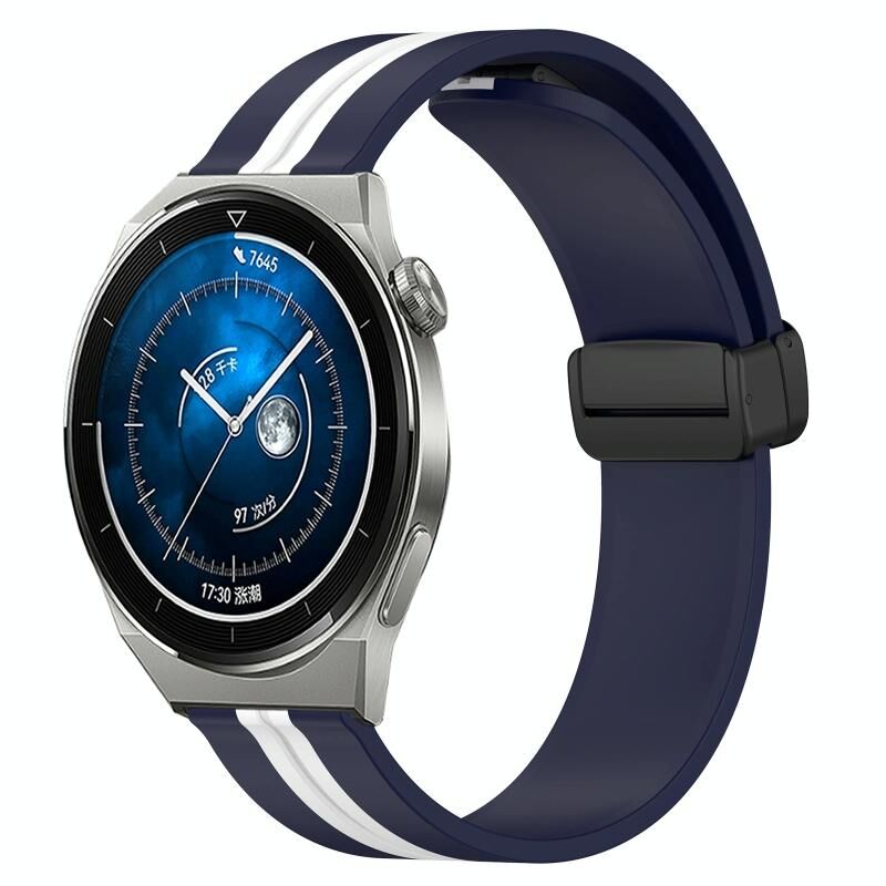 Για το Huawei Watch GT3 Pro 46mm 22mm Πτυσσόμενο μαγνητικό κούμπωμα ζώνη ρολογιού σιλικόνης (Μπλε + Λευκό)