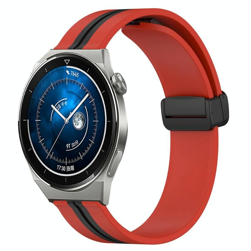 Για Huawei Watch GT3 Pro 46mm 22mm Πτυσσόμενο μαγνητικό κούμπωμα ζώνη ρολογιού σιλικόνης (κόκκινο + μαύρο)