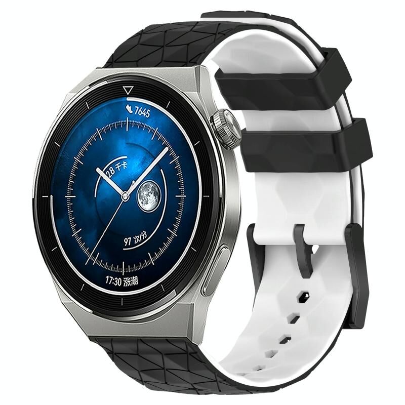 Για το Huawei Watch GT3 Pro 46mm 22mm ποδοσφαιρικό μοτίβο σιλικόνης δύο χρωμάτων (μαύρο + λευκό)