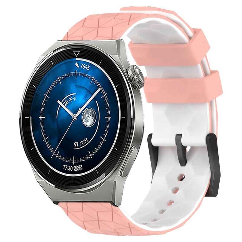 Για το Huawei Watch GT3 Pro 46mm 22mm ποδοσφαιρικό μοτίβο δύο χρωμάτων σιλικόνης (ροζ + λευκό)