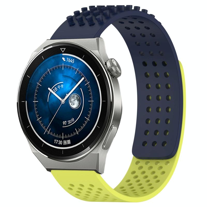 For Huawei Watch GT3 Pro 46mm 22mm Holes Breathable 3D Dots Silicone Watch Band(Midnight Blue+Lime Green)