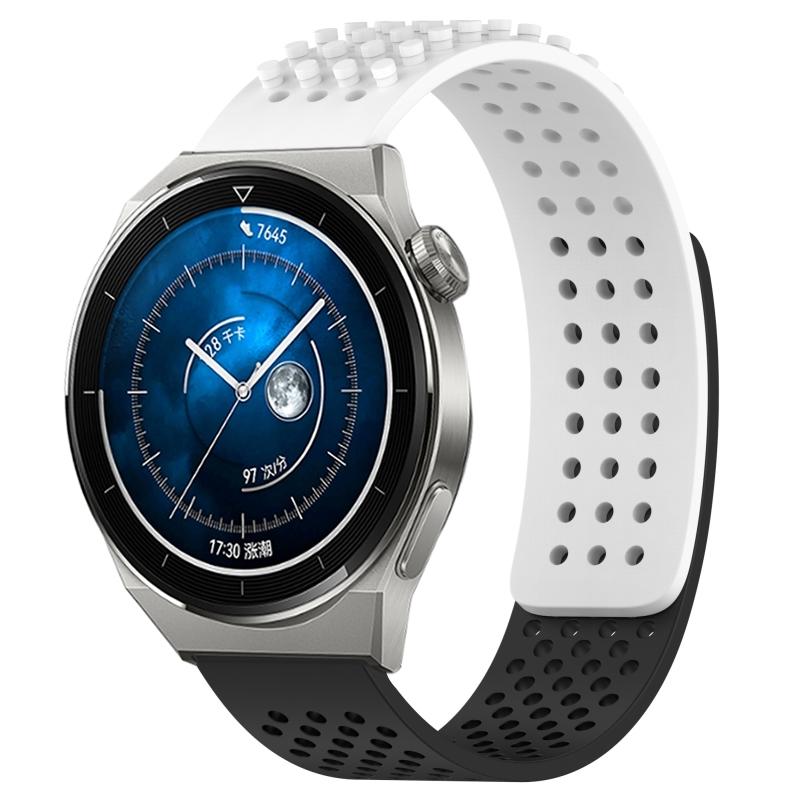 For Huawei Watch GT3 Pro 46mm 22mm Holes Breathable 3D Dots Silicone Watch Band(White+Black)