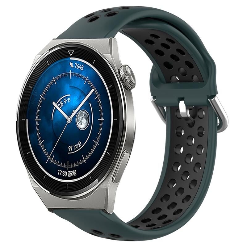 Για το Huawei Watch GT3 Pro 46mm 22mm διάτρητη αναπνεύσιμη αθλητική ζώνη ρολογιού σιλικόνης (Olive Green + Black)