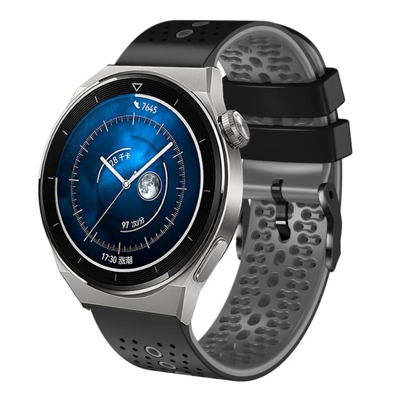 Για το Huawei Watch GT3 Pro 46mm 22mm διάτρητη ζώνη ρολογιού σιλικόνης δύο χρωμάτων (μαύρο + γκρι)