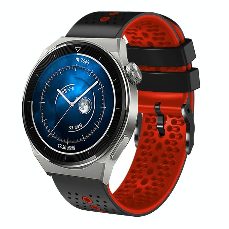 Για το Huawei Watch GT3 Pro 46mm 22mm διάτρητη ζώνη ρολογιού σιλικόνης δύο χρωμάτων (μαύρο + κόκκινο)