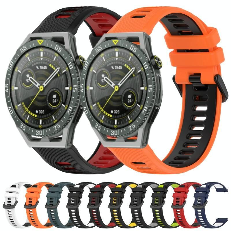 Για Huawei Watch GT3 Pro 46mm 22mm Αθλητικό λουράκι ρολογιού σιλικόνης δύο χρωμάτων (πορτοκαλί + μαύρο)