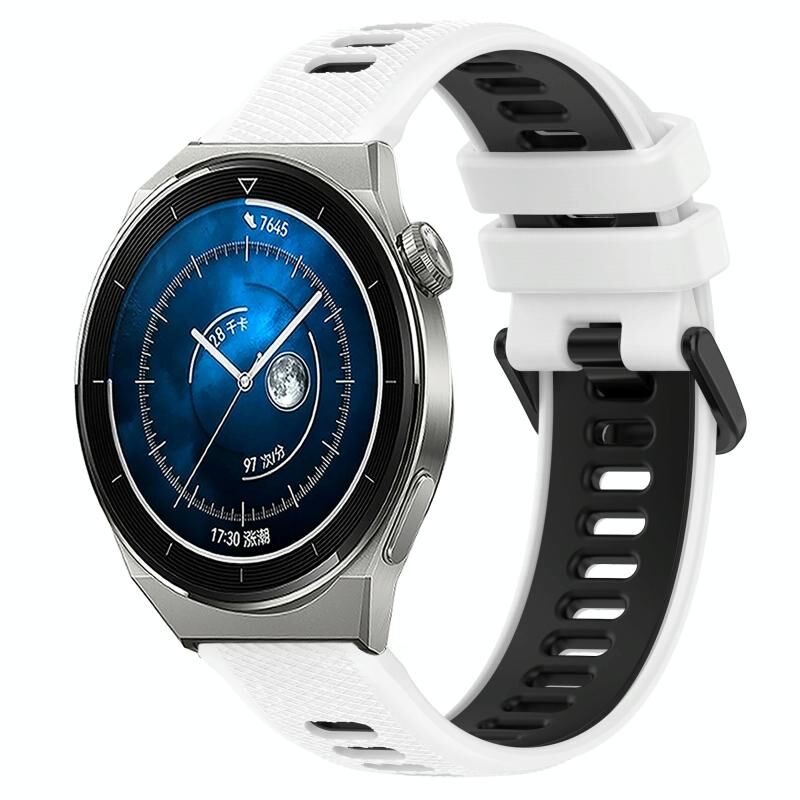 Για το Huawei Watch GT3 Pro 46mm 22mm Αθλητικό λουράκι ρολογιού σιλικόνης δύο χρωμάτων (λευκό + μαύρο)