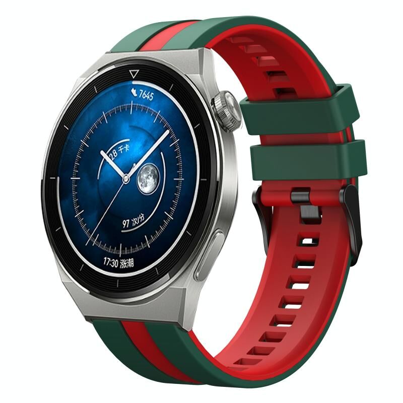 Για το Huawei Watch GT3 Pro 46mm 22mm Δύο χρώματα Αθλητικό λουράκι σιλικόνης (πράσινο+κόκκινο)