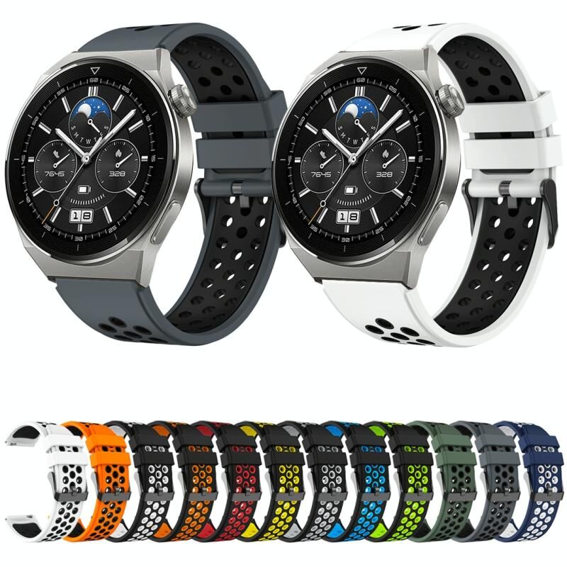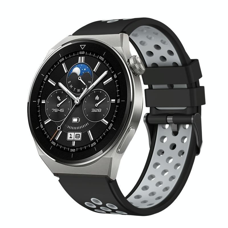 For Huawei Watch GT3 Pro 46mm Two Color Round Hole Silicone Watch Band(Black Grey)