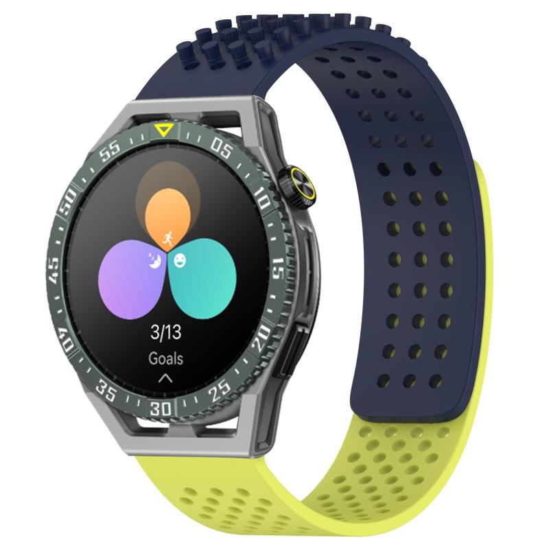 For Huawei Watch GT3 SE 22mm Holes Breathable 3D Dots Silicone Watch Band(Midnight Blue+Lime Green)