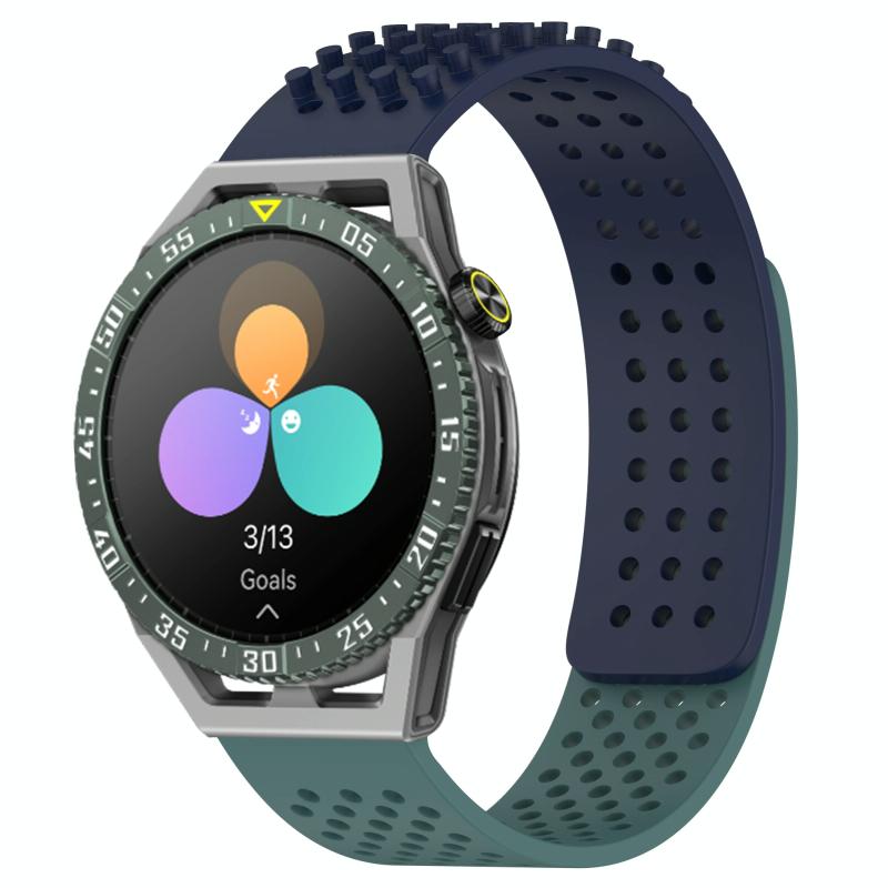For Huawei Watch GT3 SE 22mm Holes Breathable 3D Dots Silicone Watch Band(Midnight Blue+Olive Green)