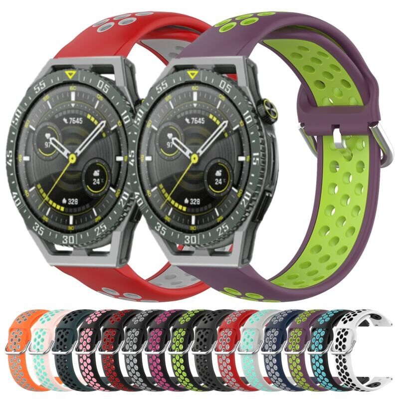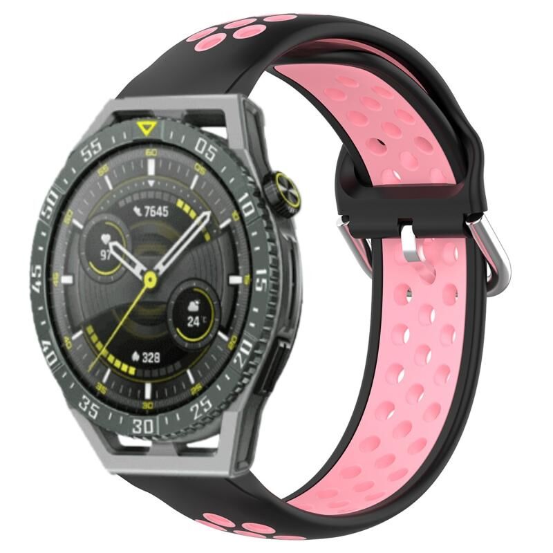 Για το Huawei Watch GT3 SE 22mm διάτρητη αναπνεύσιμη αθλητική ζώνη ρολογιού σιλικόνης (μαύρο + ροζ)