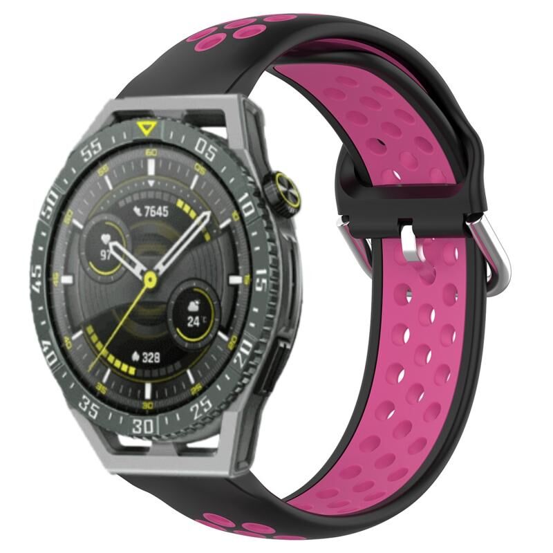 Για το Huawei Watch GT3 SE 22mm διάτρητη αναπνεύσιμη αθλητική ζώνη ρολογιού σιλικόνης (μαύρο + ροζ κόκκινο)