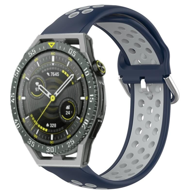Για το Huawei Watch GT3 SE 22mm διάτρητη αναπνεύσιμη αθλητική ζώνη ρολογιού σιλικόνης (Μπλε μεσάνυχτα + γκρι)