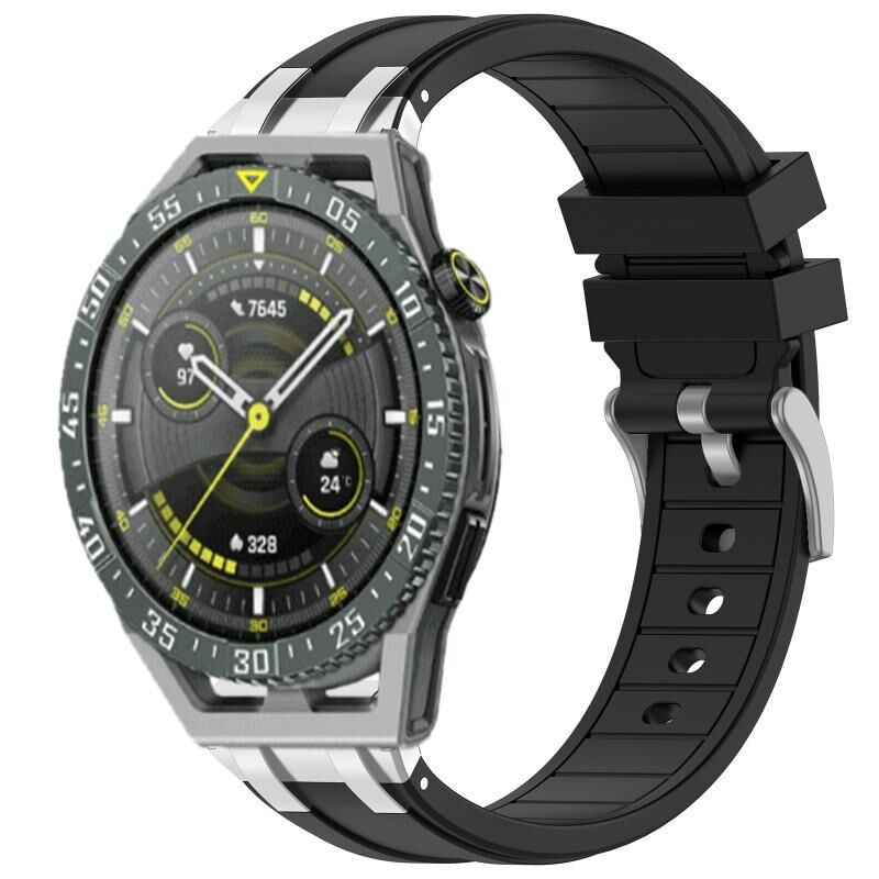 For Huawei Watch GT3 SE 22mm Quick Release Silver Buckle Royal Silicone Watch Band(Black)