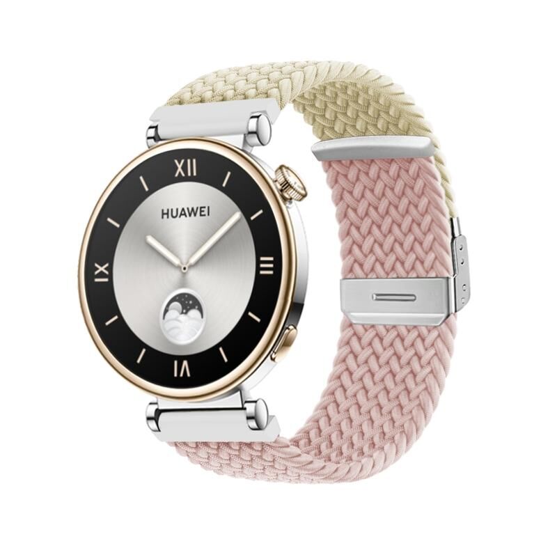 For Huawei Watch GT4 41mm Integrated Buckle Braided Nylon Watch Band(Starlight+Pink)