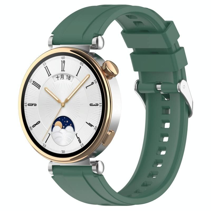Για το Huawei Watch GT4 41mm Official Steps Style Silver Buckle Silicone Watch Band (σκούρο πράσινο)