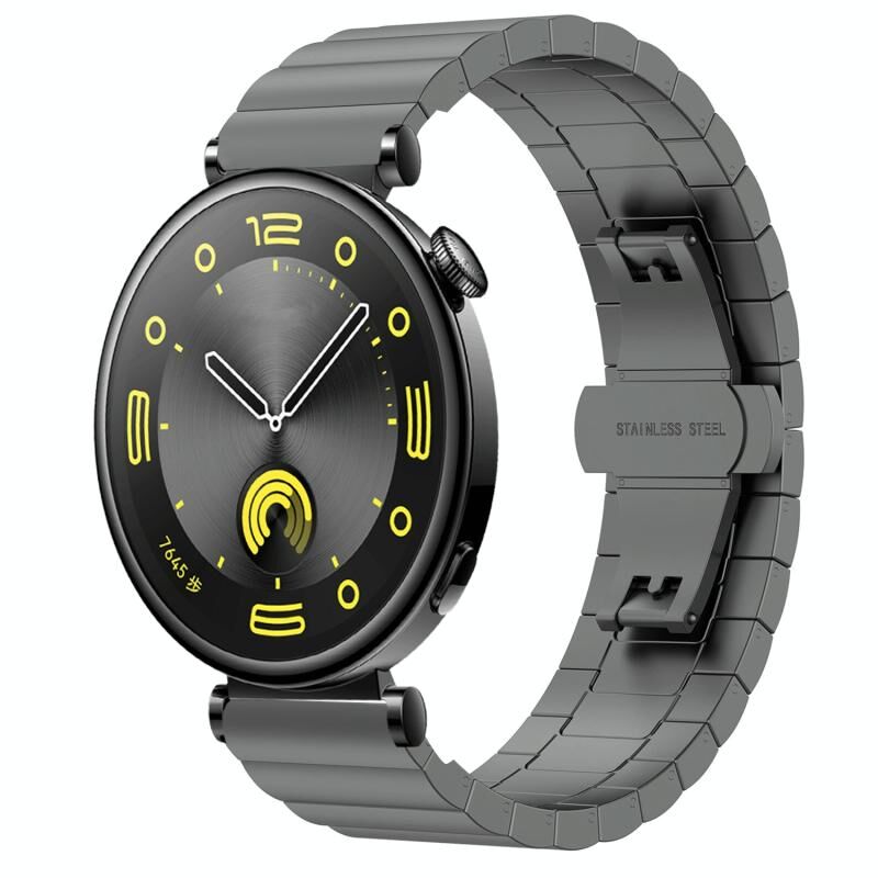Για το Huawei Watch GT4 41 χιλιοστά Μία χάντρα πεταλούδα πόρπη από ανοξείδωτο χάλυβα μεταλλική ζώνη ρολογιού (γκρι)