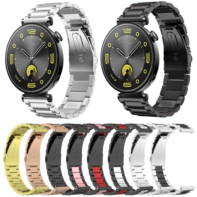 Για το Huawei Watch GT4 41mm Τρεις χάντρες από ανοξείδωτο χάλυβα μεταλλικό λουράκι ρολογιού (μαύρο)