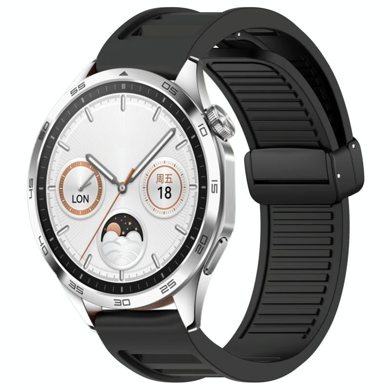Για το Huawei Watch GT4 46mm 22mm Πτυσσόμενο μαγνητικό λουράκι σιλικόνης (μαύρο)