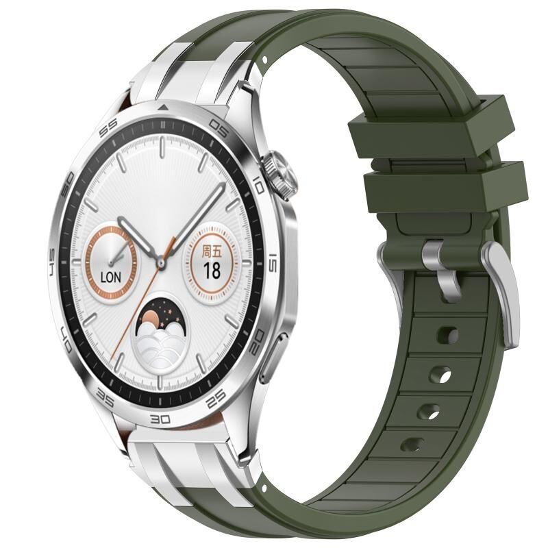 For Huawei Watch GT4 46mm 22mm Quick Release Silver Buckle Royal Silicone Watch Band(Olive Green)