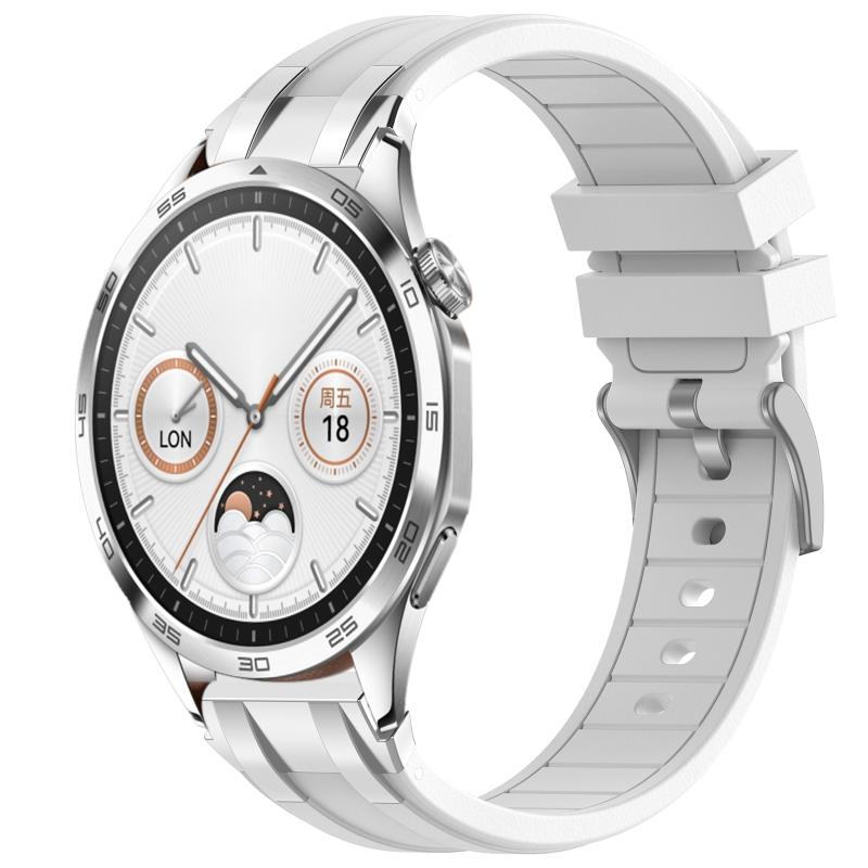 For Huawei Watch GT4 46mm 22mm Quick Release Silver Buckle Royal Silicone Watch Band(White)