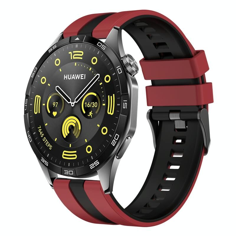 For Huawei Watch GT4 46mm 22mm Two Color Sports Silicone Watch Band(Red+Black)