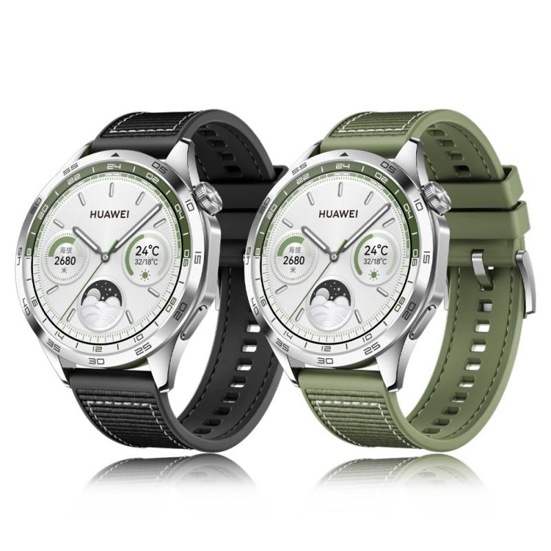 For Huawei Watch GT4 46mm Nylon Hybrid Braid Silicone Watch Band, Size: 22mm(Blue)