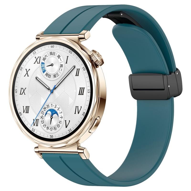 Για το Huawei Watch GT5 41mm Πτυσσόμενο μαγνητικό λουράκι σιλικόνης (ναυτικό πράσινο)