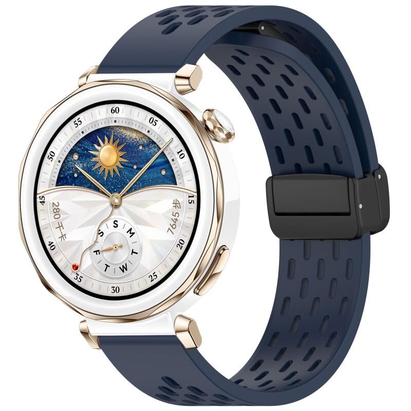 Για το Huawei Watch GT5 Pro 42mm Πτυσσόμενο μαγνητικό λουράκι σιλικόνης για ρολόι (Μπλε μεσάνυχτα)
