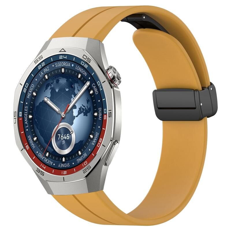 Για Huawei Watch GT5 Pro 46mm Πτυσσόμενο μαγνητικό λουράκι σιλικόνης (κίτρινο)