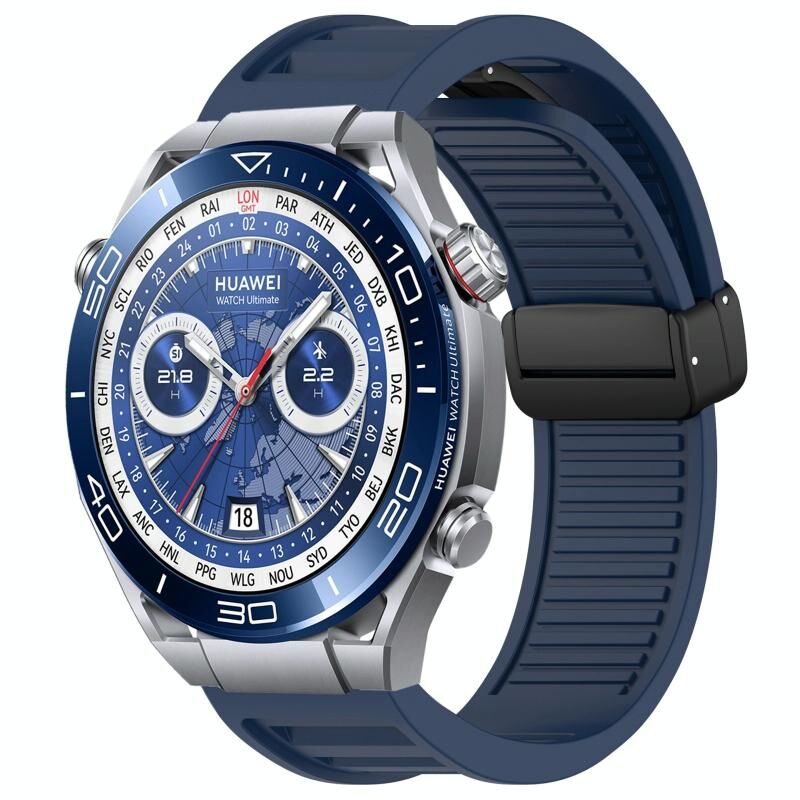 Για το Huawei Watch Ultimate 22mm πτυσσόμενο μαγνητικό λουράκι σιλικόνης για ρολόι (Μπλε μεσάνυχτα)