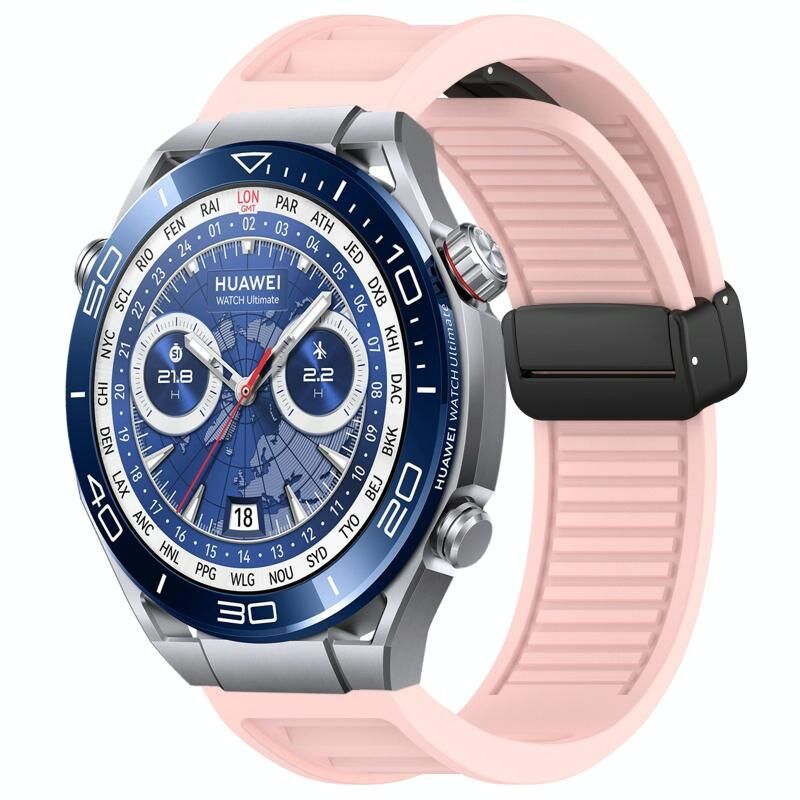 Για το Huawei Watch Ultimate 22mm πτυσσόμενο μαγνητικό λουράκι σιλικόνης (ροζ)