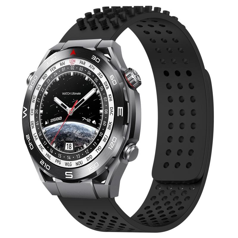 For Huawei Watch Ultimate 22mm Holes Breathable 3D Dots Silicone Watch Band(Black)